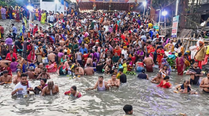 বিশেষ প্রতিবেদন: নারায়ণগঞ্জের লাঙ্গলবন্দ এলাকায় শুরু হয়েছে হিন্দু ধর্মাবলম্বীদের অন্যতম বৃহৎ ধর্মীয় আয়োজন মহাতীর্থ অষ্টমী স্নান উৎসব। পাপমুক্তি ও পুণ্য লাভের আশায় দেশ-বিদেশ থেকে আগত লাখো পুণ্যার্থীর পদচারণায় মুখর হয়ে উঠেছে ব্রহ্মপুত্র নদ তীরবর্তী প্রায় তিন কিলোমিটার এলাকা। শাস্ত্রীয় তিথি অনুযায়ী বুধবার বিকাল ৫টা ১৭ মিনিটে পুণ্যস্নানের লগ্ন শুরু হয়। লগ্ন শুরু হতেই নদের বিস্তারিত...