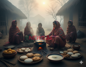 বাংলার শীতের সবচেয়ে মধুর দিক হলো খাবার। এই সময়েই ঘরে ঘরে পিঠা-পায়েসের আয়োজন। উঠোনে মা-মেয়েরা একসঙ্গে বসে ভাপা পিঠা বানায়, পাশে ধোঁয়া ওঠা দুধের হাঁড়ি।